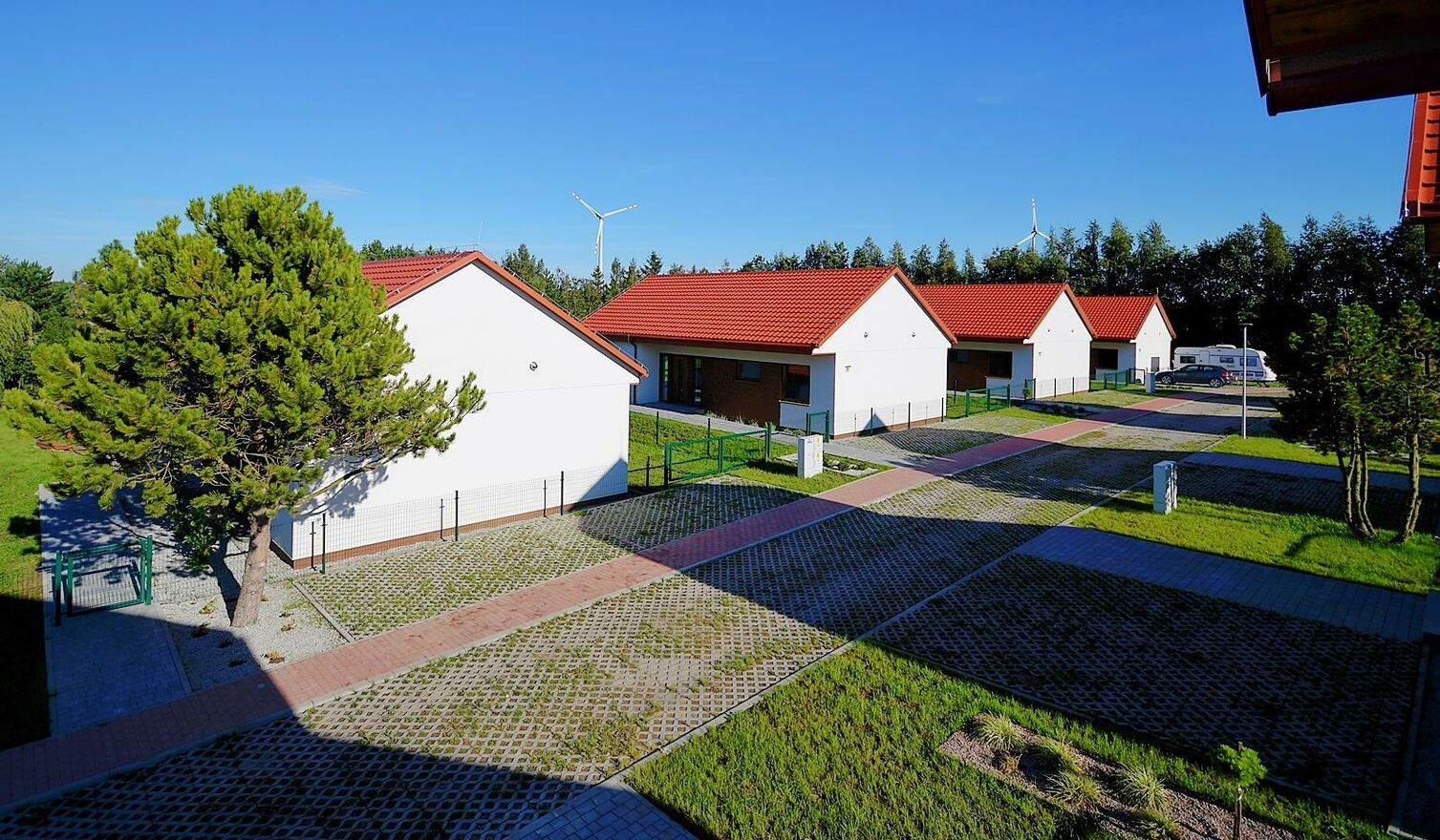 Przy wjeździe znajduje się pomieszczenie gospodarcze dla domów, które nie posiadają altan.