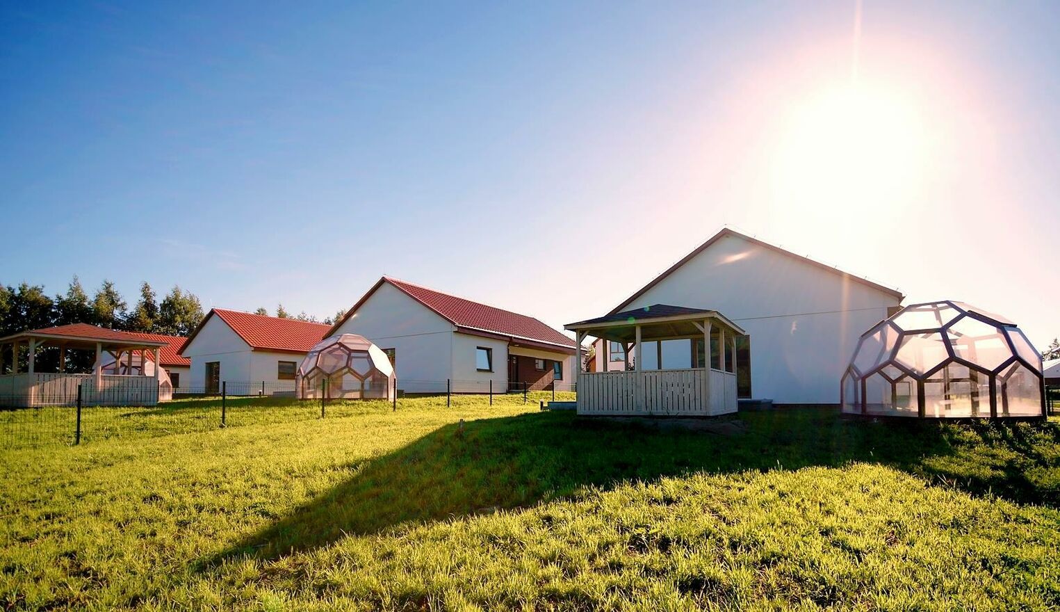 Domy wybudowane są w energooszczędnej technologii z prefabrykowanych i izolowanych materiałów z naturalnych włókien drzewnych.